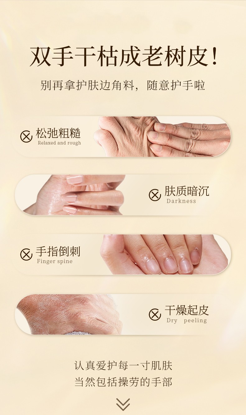 - 说明: 该护手霜产品为贴牌加工样品展示,并非现货可批发或单独购买!我司主要做全品类护肤品代加工定制,产品品类及功效众多无法一一展示,如需了解更多化妆品代加工可直接联系我司客服人员,感谢您的信赖与选择!