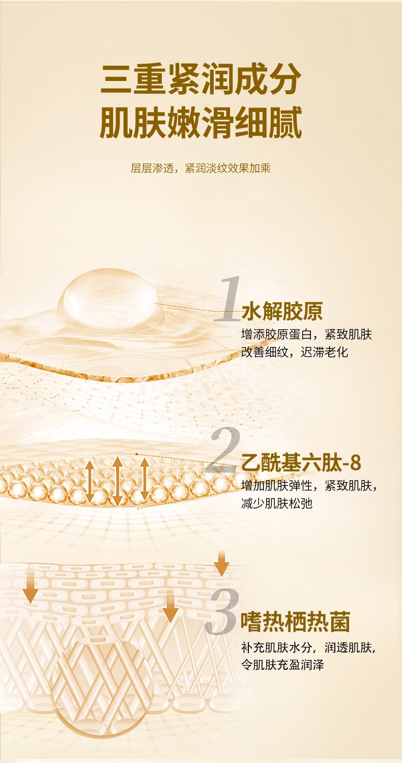 【主要成分】:水解胶原、乙酰基六肽-8、嗜热栖热菌等
