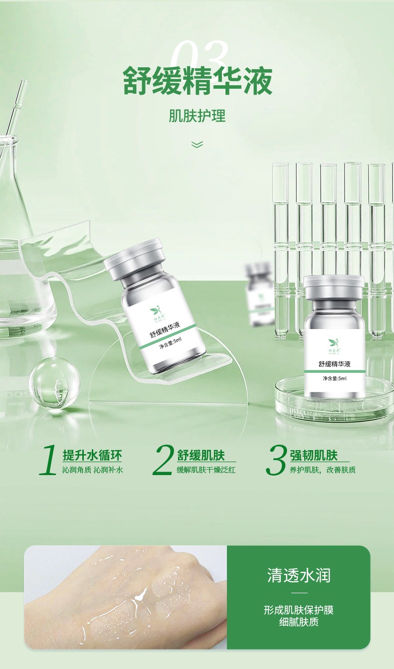【产品功效】:改善肌肤干燥缺水,舒缓肌肤,缓解不适情况,同时补充肌肤水分,令肌肤舒润水滢
