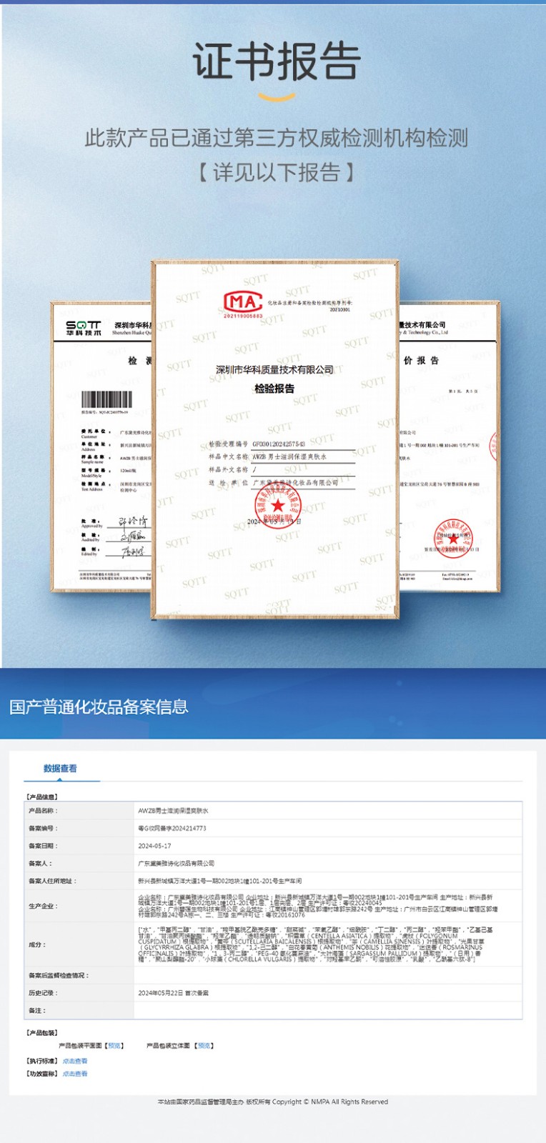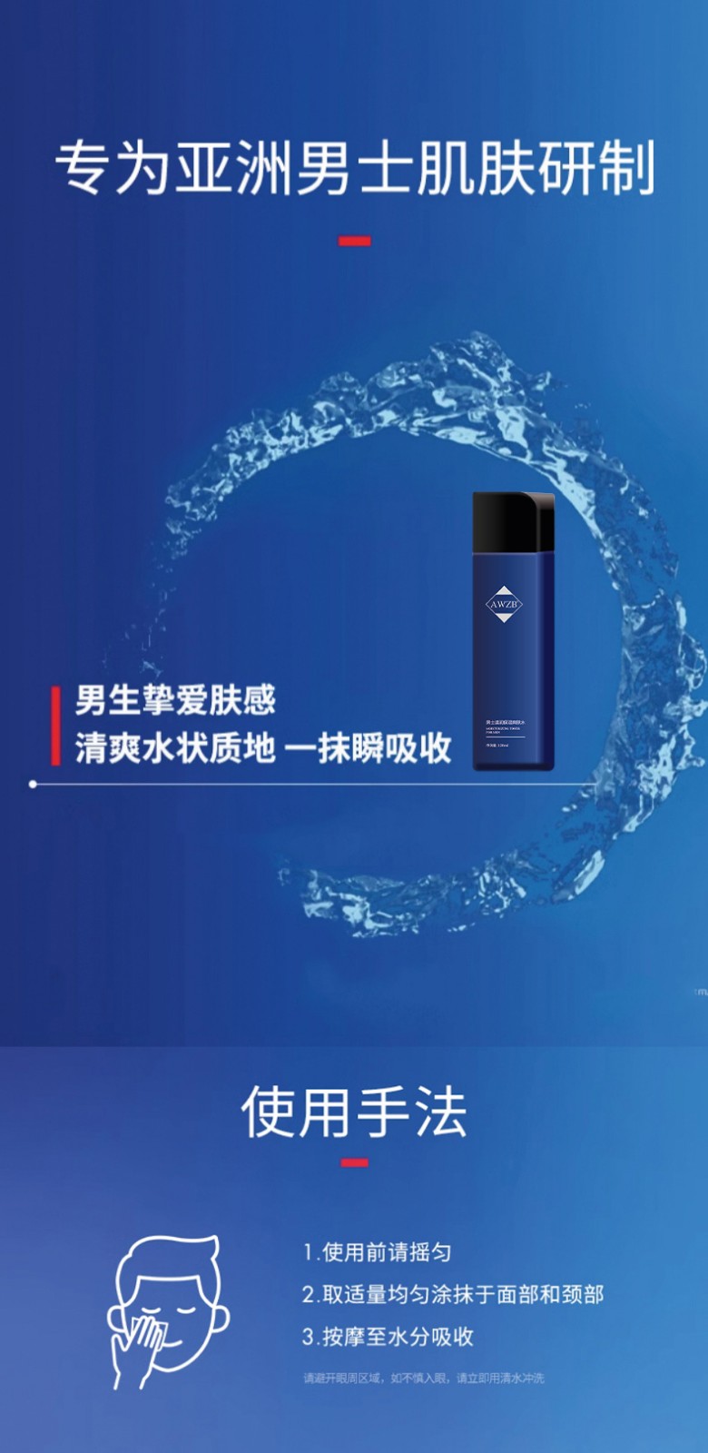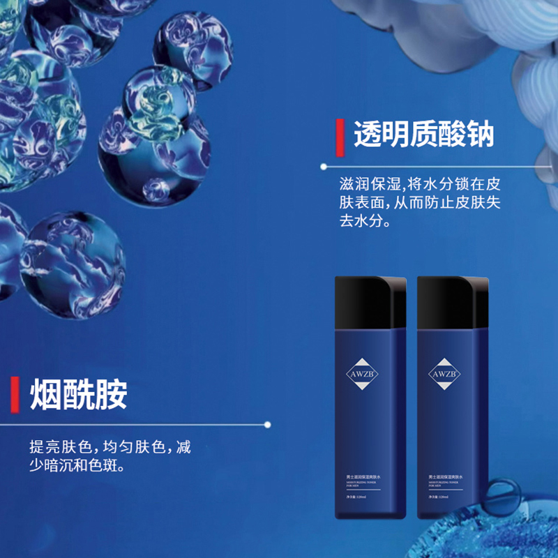 该男士爽肤水定制产品为贴牌加工样品展示,并非现货可批发或单独购买!我司主要做全品类护肤品代加工定制,产品品类及功效众多无法一一展示,如需了解更多化妆品代加工可直接联系我司客服人员,感谢您的信赖与选择!