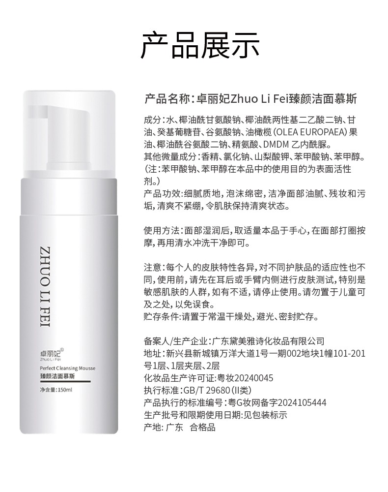 该洁面慕斯产品为贴牌加工样品展示,并非现货可批发或单独购买!我司主要做全品类护肤品代加工定制,产品品类及功效众多无法一一展示,如需了解更多化妆品代加工可直接联系我司客服人员,感谢您的信赖与选择!
