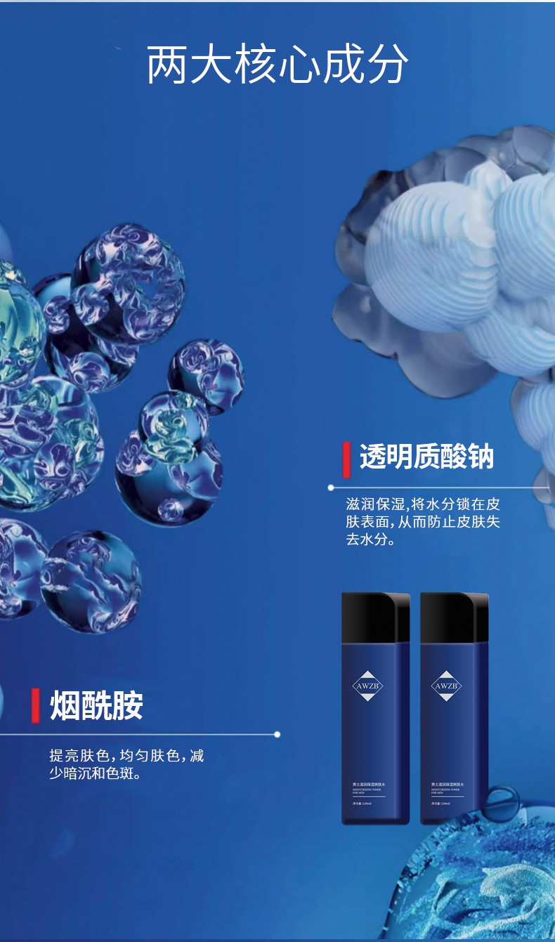 该男士爽肤水定制产品为贴牌加工样品展示,并非现货可批发或单独购买!我司主要做全品类护肤品代加工定制,产品品类及功效众多无法一一展示,如需了解更多化妆品代加工可直接联系我司客服人员,感谢您的信赖与选择!
