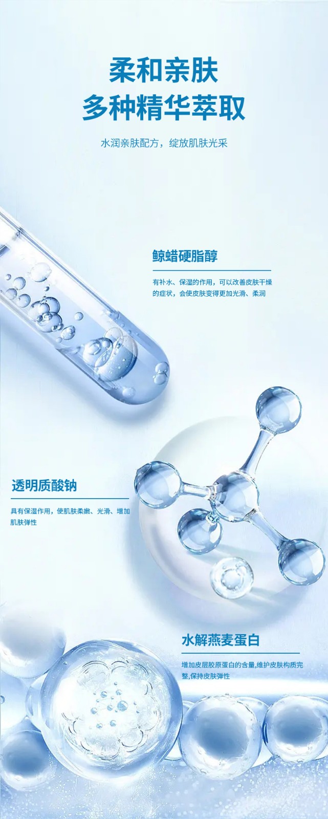 【主要成分】:鲸蜡硬脂醇、牛油果树果脂、水解燕麦蛋白、透明质酸钠、积雪草提取物、光果甘草根提取物等