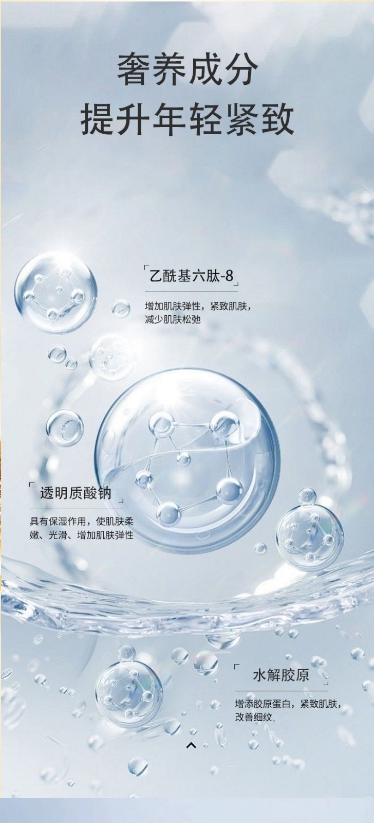【产品功效】:增加肌肤弹性,紧致肌肤,减少肌肤松弛