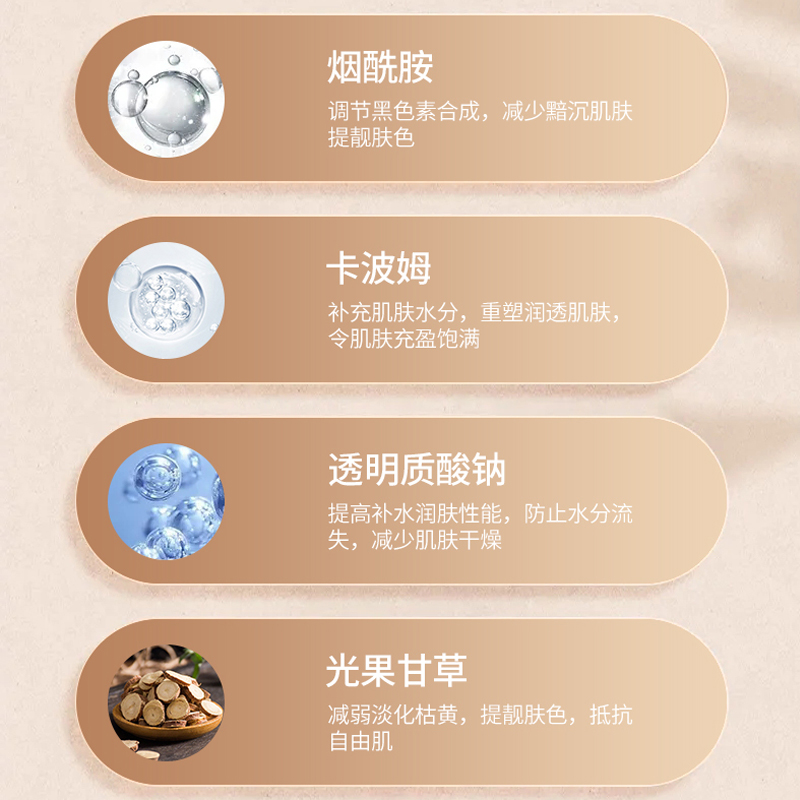 【 Main Ingredients 】: Niacinamide, Carbopol, Sodium Hyaluronate, Licorice, etc
