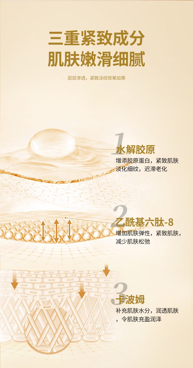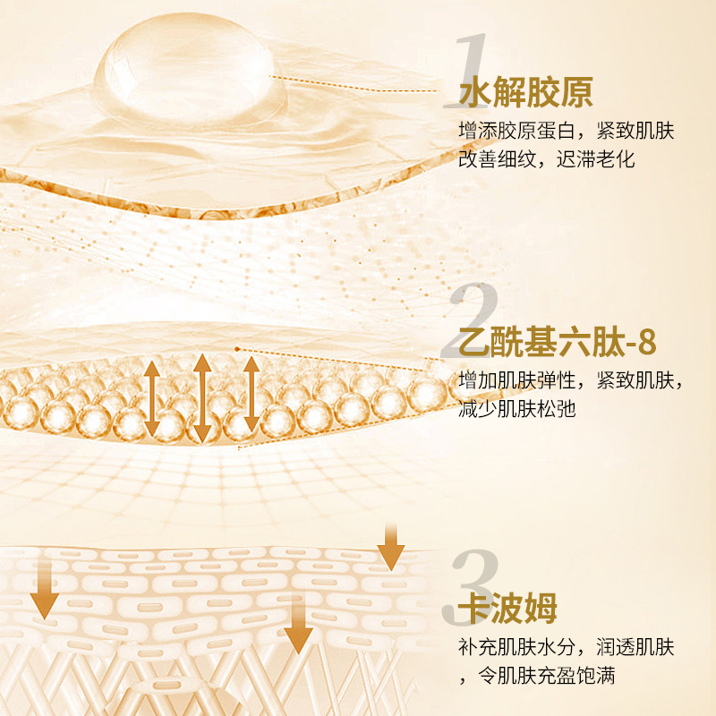 【 Main Ingredients 】: hydrolyzed collagen, acetyl hexapeptide-8, carbomer, etc